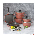 + موارد بیشترقابلمه سایز ۲۸ به ابعاد ۳۷×۱۲×۲۹ سانتیمتر و وزن ۲۰۰۰ گرم، قابلمه سایز ۲۴ به ابعاد ۳۵×۱۲×۲۵ سانتیمتر وزن ۱۶۴۰ گرم، قابلمه سایز ۳۲ به ابعاد۴۳×۱۴×۳۳ سانتیمتر و وزن ۲۳۲۵ گرم، قابلمه سایز ۲۰ به ابعاد ۲۹×۱۰×۲۱ سانتیمتر و وزن ۱۰۷۵ گرم، تابه دو دسته سایز ۲۸ به ابعاد ۴۸×۸×۲۹ سانتیمتر و وزن ۱۹۸۰ گرم، تابه دوطرفه سایز ۳۲ به ابعاد ۲۲×۷×۳۰ سانتیمتر و وزن ۱۹۰۰ گرم، اقلام سرویس پخت و پز: قابلمه و تابه، ویژگی ظرف پخت: در پیرکس، در با سوپاپ تخلیه بخار، قابلیت استفاده در: فر، قابل شستشو: با دست